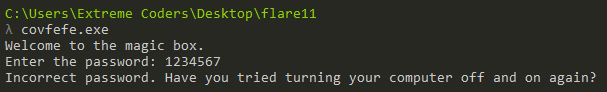 Wait, “covfefe”? What does that even mean? Jokes and memes aside that’s indeed the name of the binary for the 11th challenge. The task description reads: