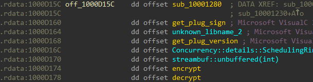 The plugins export a function named CreatePluginObj . This may sound similar to Component Object Model (COM). In fact, the plugin system is quite similar to it. Remember the 16 byte id in the message body. The same ID can be found unique to each plugin.