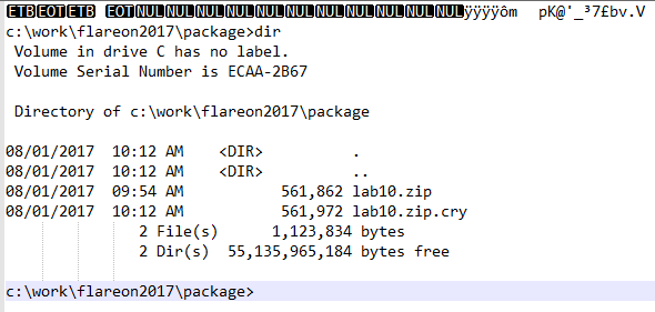 Similar to the BMP, the cry file is also split across multiple messages. Reconstructing them and running through our decrypter we can get back the original zip file lab10.zip.