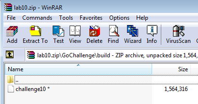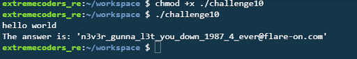 The zip file contains an x86-64 ELF binary named challenge10. The password of the zip is in the BMP image found earlier.