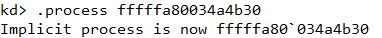 Knowing the address of EPROCESS we can set the process context using the .process command.