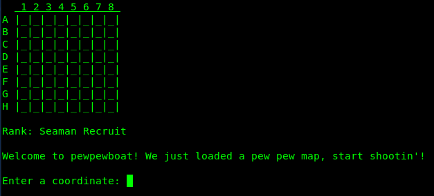 We iterate over all of the 64 characters in the bit string and print ‘@’ if it contains 1. Running the code, we immediately get the position of the ships.