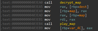 We need to set a breakpoint on the play_map call at 403EB4 in order to fetch the map passed in rdi and thus the goal state.