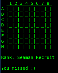 There is an 8×8 rectangular grid. Some of the cells have a ship hidden beneath it. The objective is to uncover all the ships in a limited number of moves. Lets’ try a coordinate say G1.