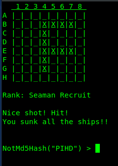 We failed at the first attempt. The map is static, with many more attempts it’s possible to uncover all the ships. When all ships are uncovered, the program prompts for an input – a hash value of sorts. Let’s have a look in IDA.