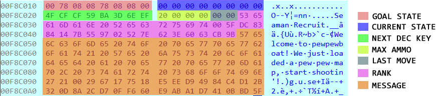 struct map { QWORD goal_state; QWORD current_state; QWORD next_dec_key; DWORD max_ammo; char last_move[2]; char rank[32]; char message[514]; };