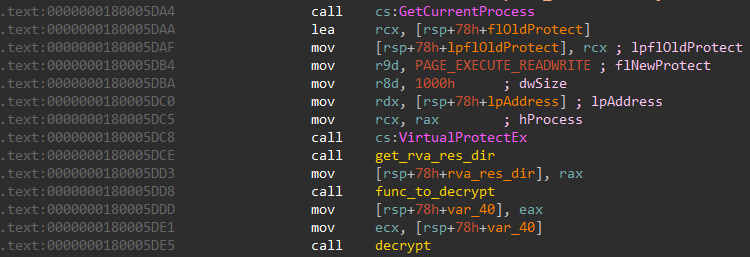 The returned integer in eax is passed to function decrypt . The exported function in the dumped dll takes a different name for each of the 26 possible in (year + month) % 26. To get all the possible names of the exported functions, I wrote a small script in x64dbg.