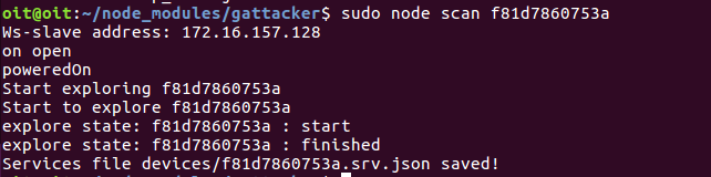 sudo node scan f81d7860753A where f81d7860753A is the peripheral name of the bulb as saved by gattacker.