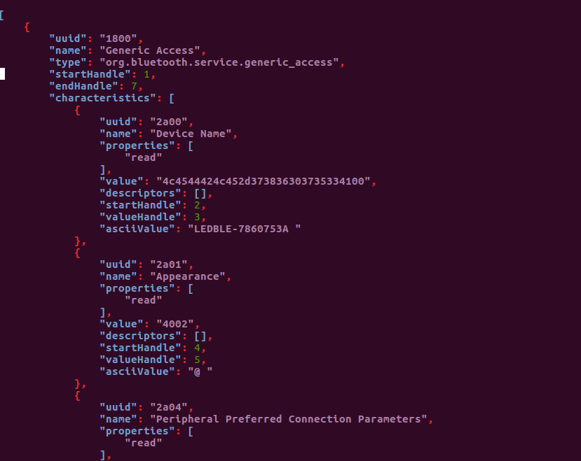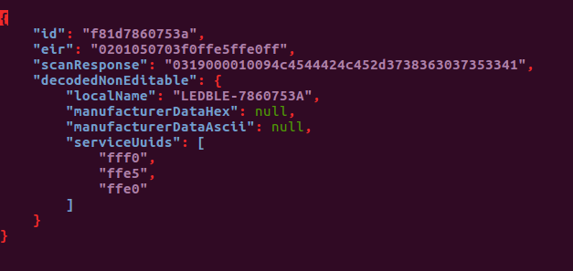 Step 3: Now open up the file f81d7860753a_LEDBLE-7860753A.adv.json to see the advertisement info of the device