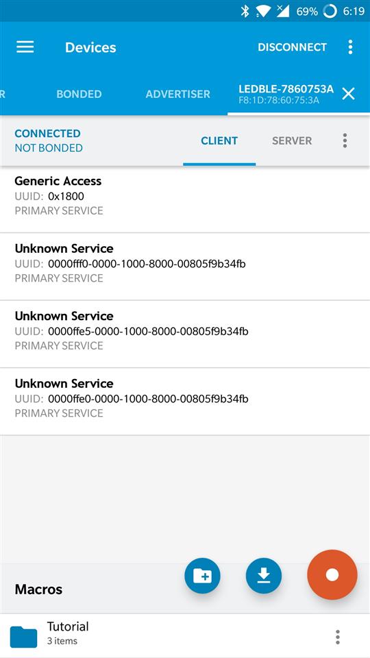 Step 1: Follow the previous exercise to store the advertisement and the service packets. Now turn off the magic blue bulb and follow the steps below
