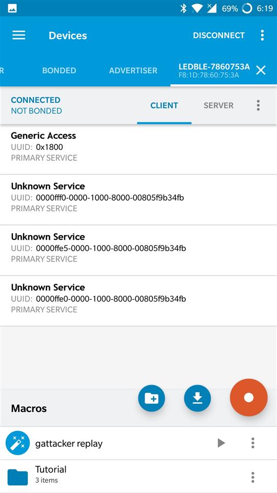 Using gattacker to dump and replay the information with NRFConnect app:
