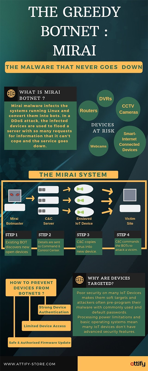 Besides its scale, this dreadful episode is a stark reminder of how the wrong use of progressively complex IoT vulnerabilities by hackers can prompt exceptionally intense botnets. We hope the Mirai occasion acts as a wake-up call and pushes towards making IoT auto-update mandatory. This is genuinely necessary to check the huge risk posed by compromised IoT gadgets, given the poor track record of Internet users manually patching their IoT devices .