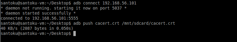adb connect 192.168.56.101 2. adb push cacert.crt /mnt/sdcard/cacert.crt