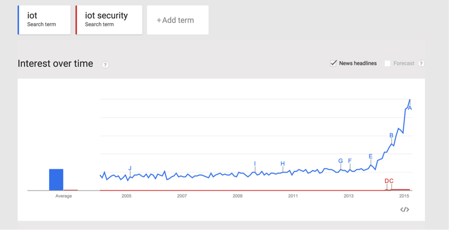 Below is the google trend analysis to show how IoT security compares against IoT.