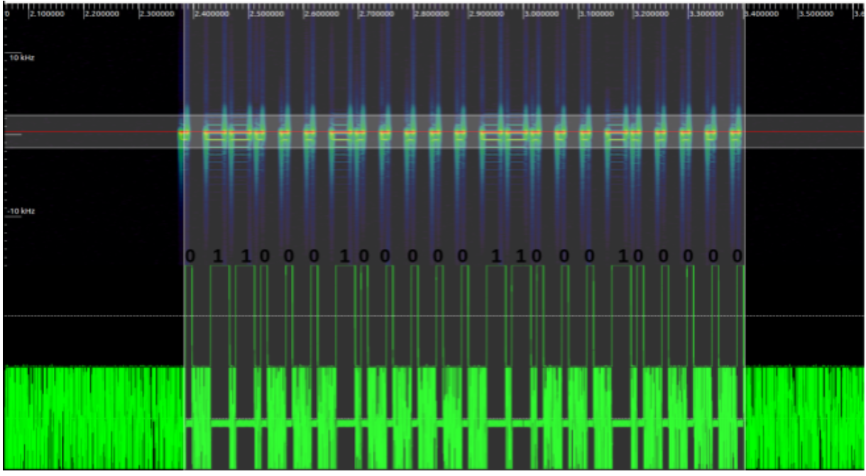 - Process it using GNURadio and Audacity to decode the modulation and recover the original data being transmitted.