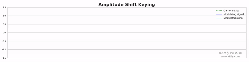 Amplitude shift-keying (ASK) is a popular modulation technique used in digital data communication for a large number of low-frequency RF applications. The source transmits a large amplitude carrier when it wants to send a '1' and small amplitude carrier when it wants to send a '0' in its simplest form. On-off keying (OOK) modulation is a further simplification of this method, where the source sends NO carrier when it wants to send a '0'. In the simplest form, the presence of a carrier for a specific duration represents a binary one, while its absence for the same duration represents a binary zero.
