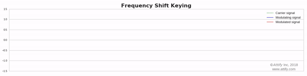 Frequency Shift Keying (FSK): In this type of modulation, the frequency of the carrier waves varies in accordance with the data signal.