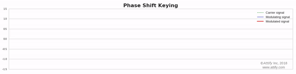 Phase Shift Keying (PSK) : In this type of modulation, the phase of the carrier signal varies in accordance with the message signal.
