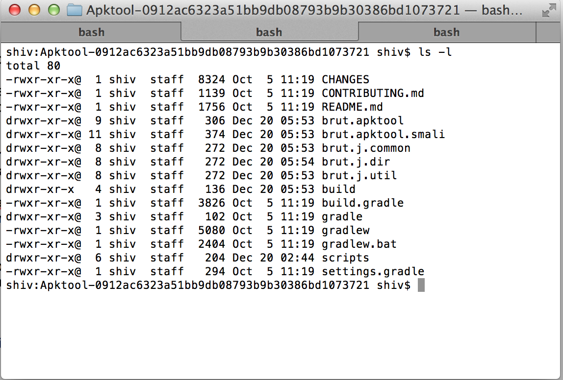 -Place the apktool.jar to ‘bin‘ directory along with apktool config file. (Note: bin folder location may depend on operating systems used.)