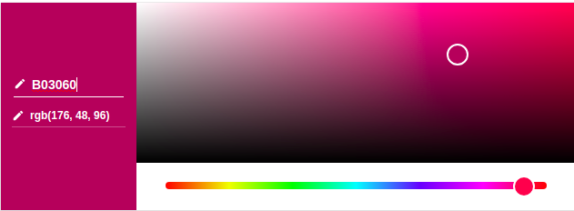 This is because the color has a RGB value of 176, 48, 96 or B03060 in hexadecimal. The command we sent to the bulb was 56 b0 30 60 00 f0 aa. Note the second, third and fourth byte correspond to the RGB value in hex.