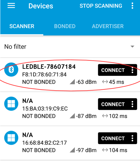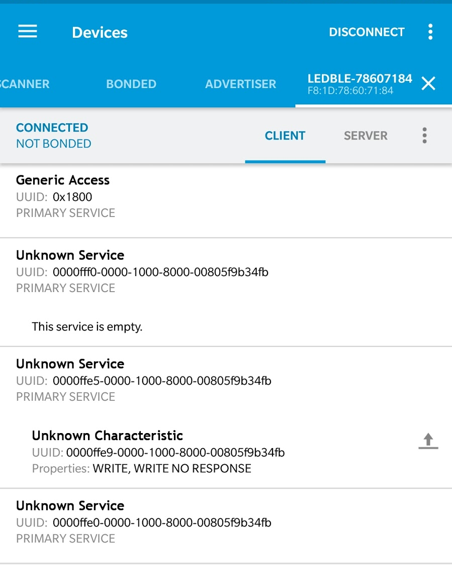 Step 5: Open the nRF Connect app and connect with the BLE bulb.