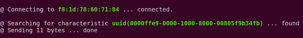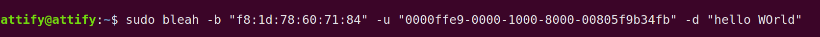 sudo bleah -b "aa:bb:cc:dd:ee:ff" -u "0000ffe9-0000-1000-8000-00805f9b34fb" -d "data"