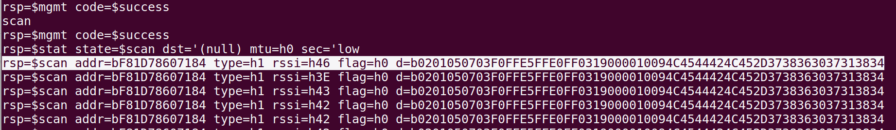 Step 1: In the same terminal type Scan to scan for BLE devices in the vicinity.