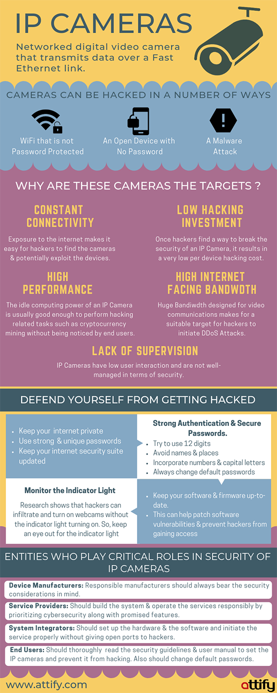 Closed Circuit Television (CCTV) frameworks have multiplied in organizations and are also heavily used for private use. Despite their increased usage lately, they carry along critical points of failure. Hacking of IP surveillance cameras first appeared in the public eye in 2016 when a huge DDoS attack influenced one-third of all US Internet services. An immense number of IP cameras had been hacked on the grounds that their default usernames and passwords had not been changed.