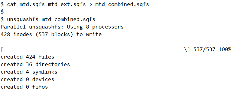 Interestingly, if we append mtd_ext.sqfs at the end of mtd.sqfs and pass the resultant to unsquashfs it succeeds.